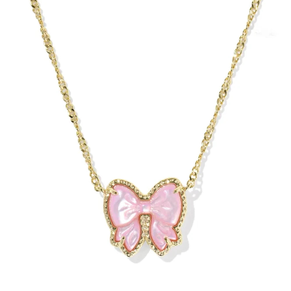 YEEVAA Bow Short Pendant Necklace in Carved Mother-of-Pearl - Gold Blush Pearl